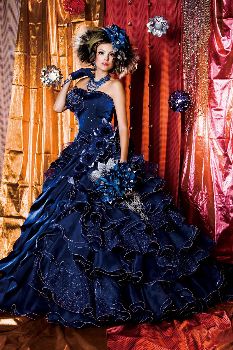 可愛すぎるのは苦手!? そんな貴女にクラシカルなネイビードレスはいかが?大胆なフリルが大人カッコイイ存在感抜群の一着です!