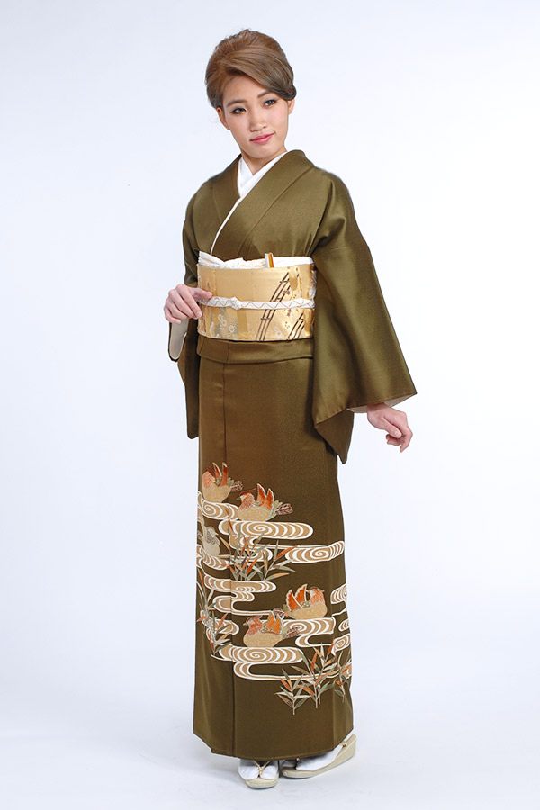 仲むつまじいおしどりと琳派流水文様で気品のある色留袖