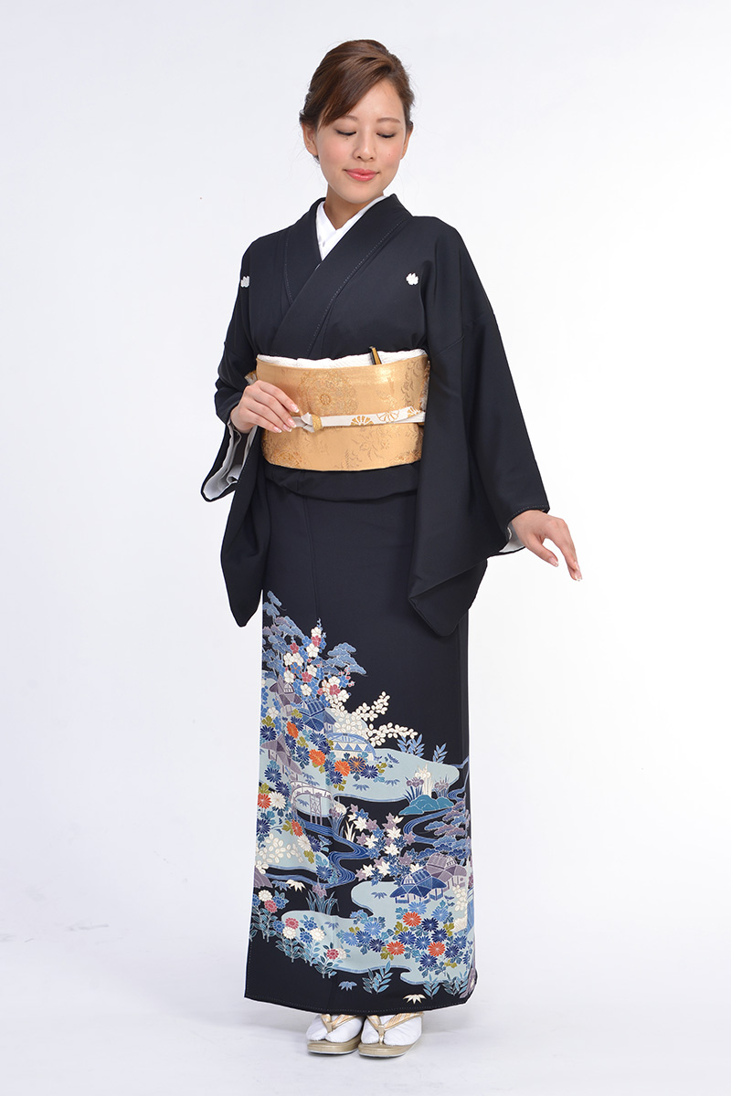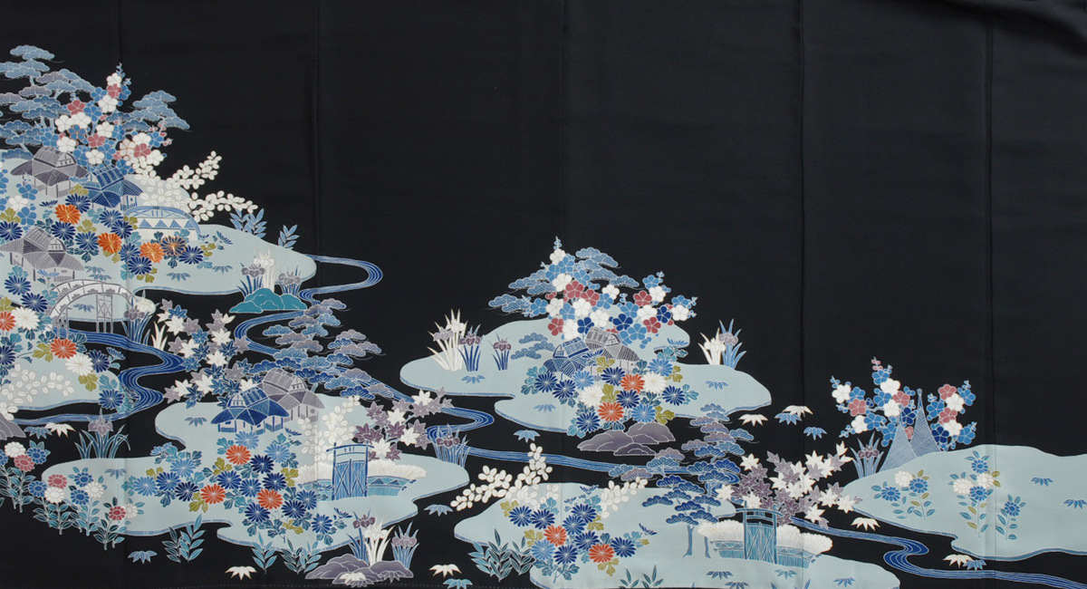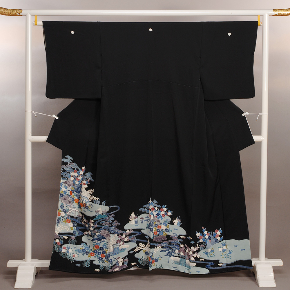 古典的な庭園文様に赤い花が可愛く優しい上品な留袖。