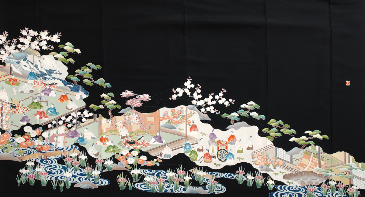 優雅な御所の風景に流水の優しさが女性らしい留袖