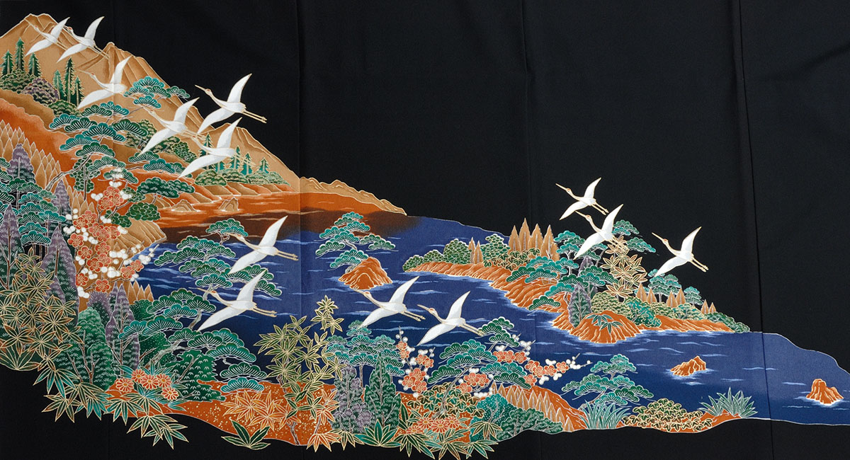 夫婦鶴は夫婦の末永い幸せの象徴とし参列衣裳として人気です。