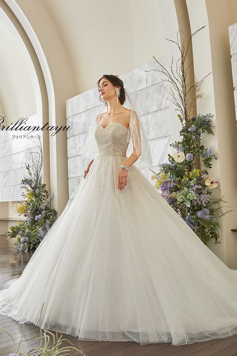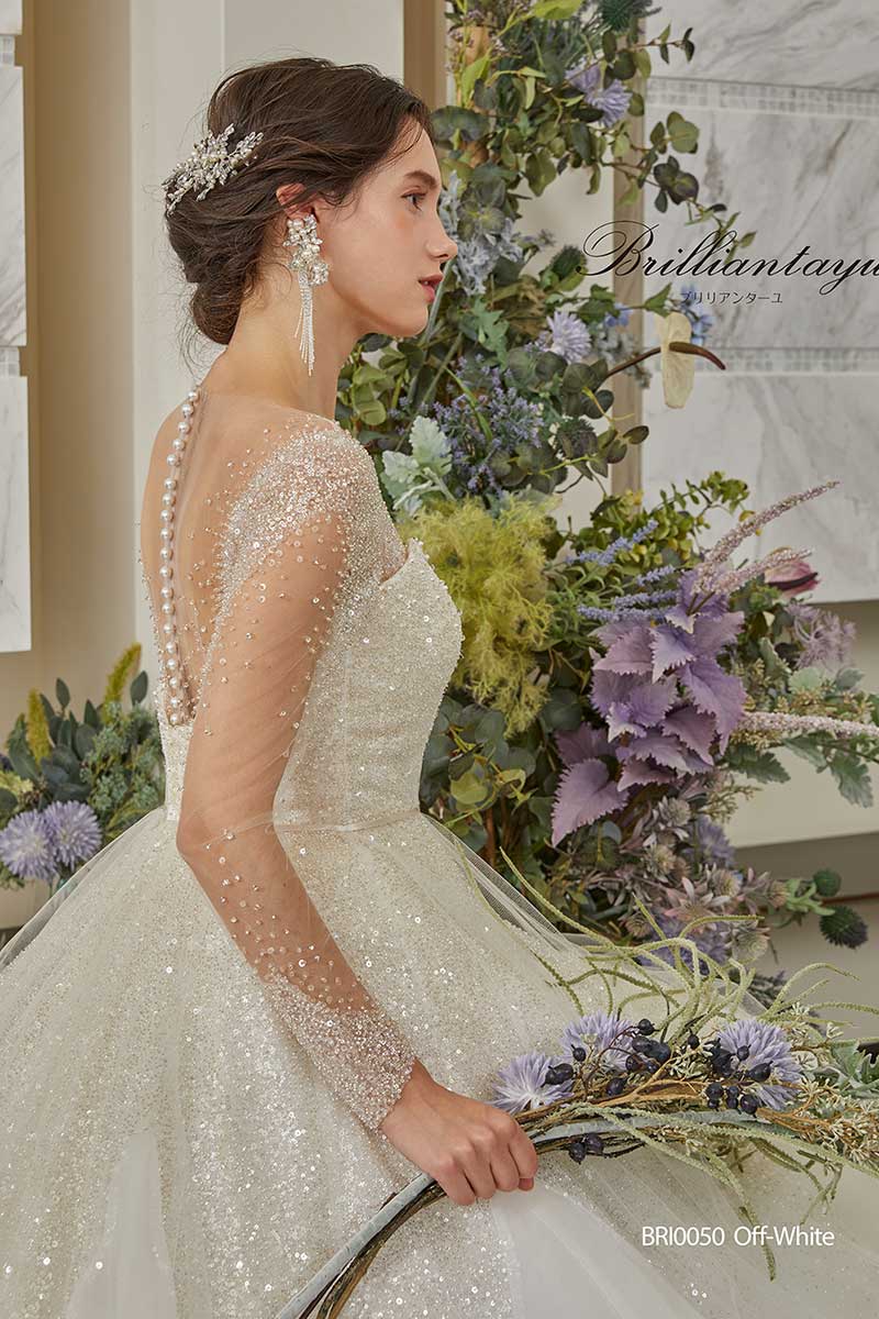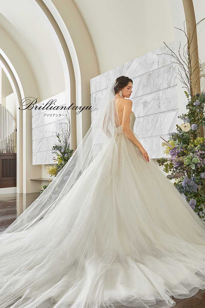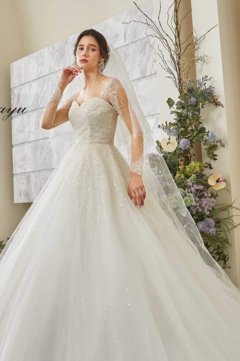 シースルー素材にビジューがきらりと輝く2WAYタイプのドレス。 沢山のビジューがあしらわれ光り輝くエレガントな花嫁に♪