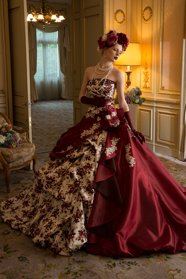 ウェディングドレスにはもちろんの事、カラードレスにも合わせやすい色合いで